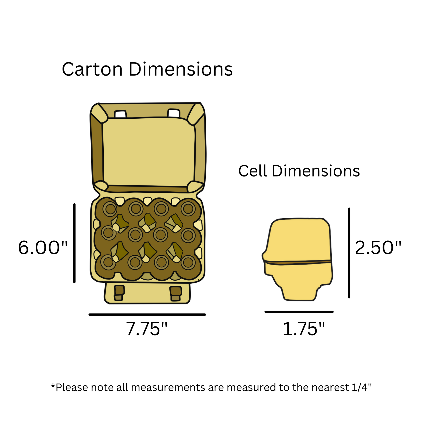 • Egg Carton Dimensions (LxW): 7.75" x 6.00"
